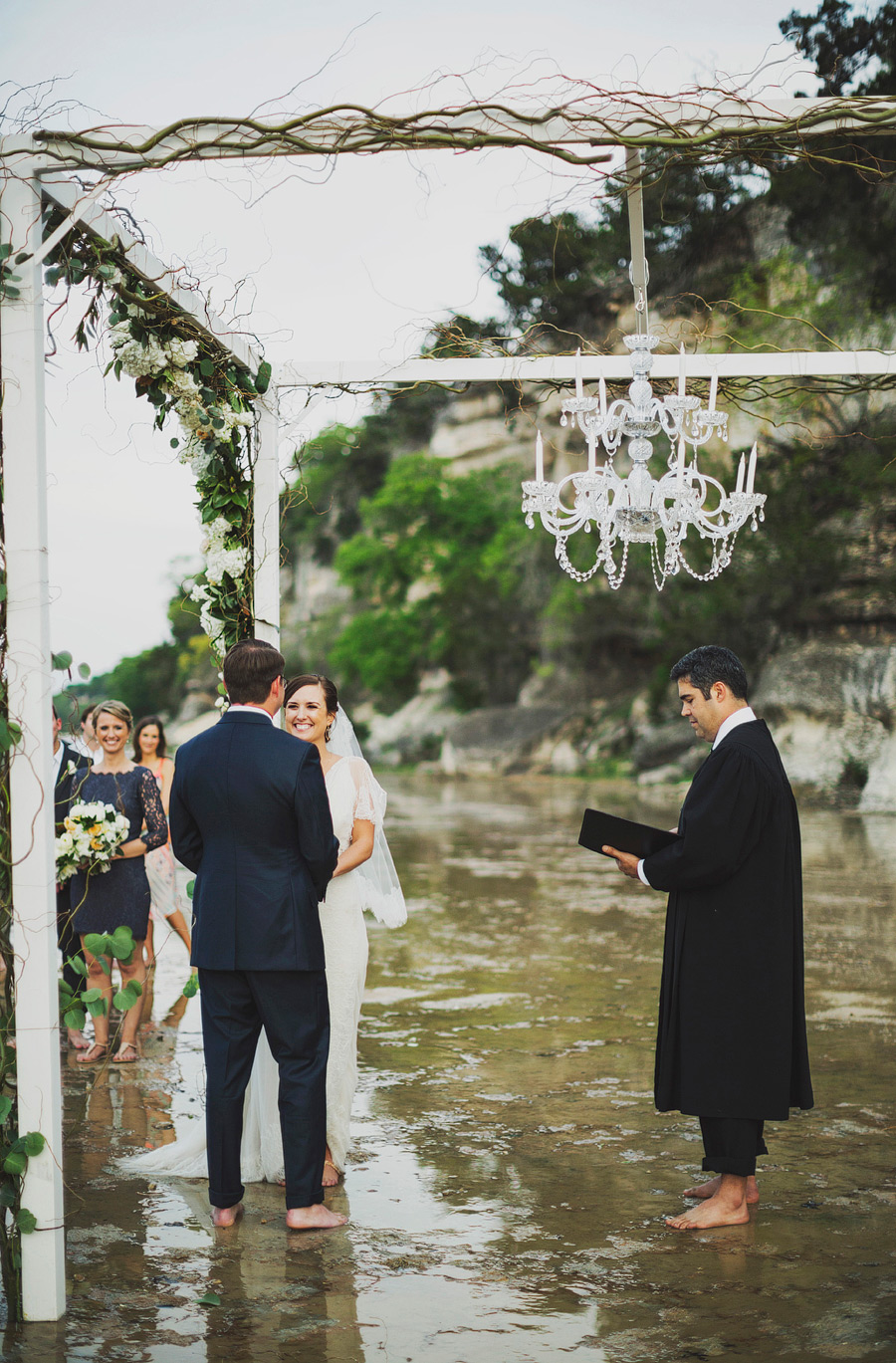 Some ceremony sites are set along a flowing stream or overlooking a picturesque lake. This couple took their ceremony to the next level by getting married IN the river that flows through the family's property. The word "majestic" doesn't even do it justice. This hill country chic wedding is the perfect example of how you can transform any space to fit your dream wedding!