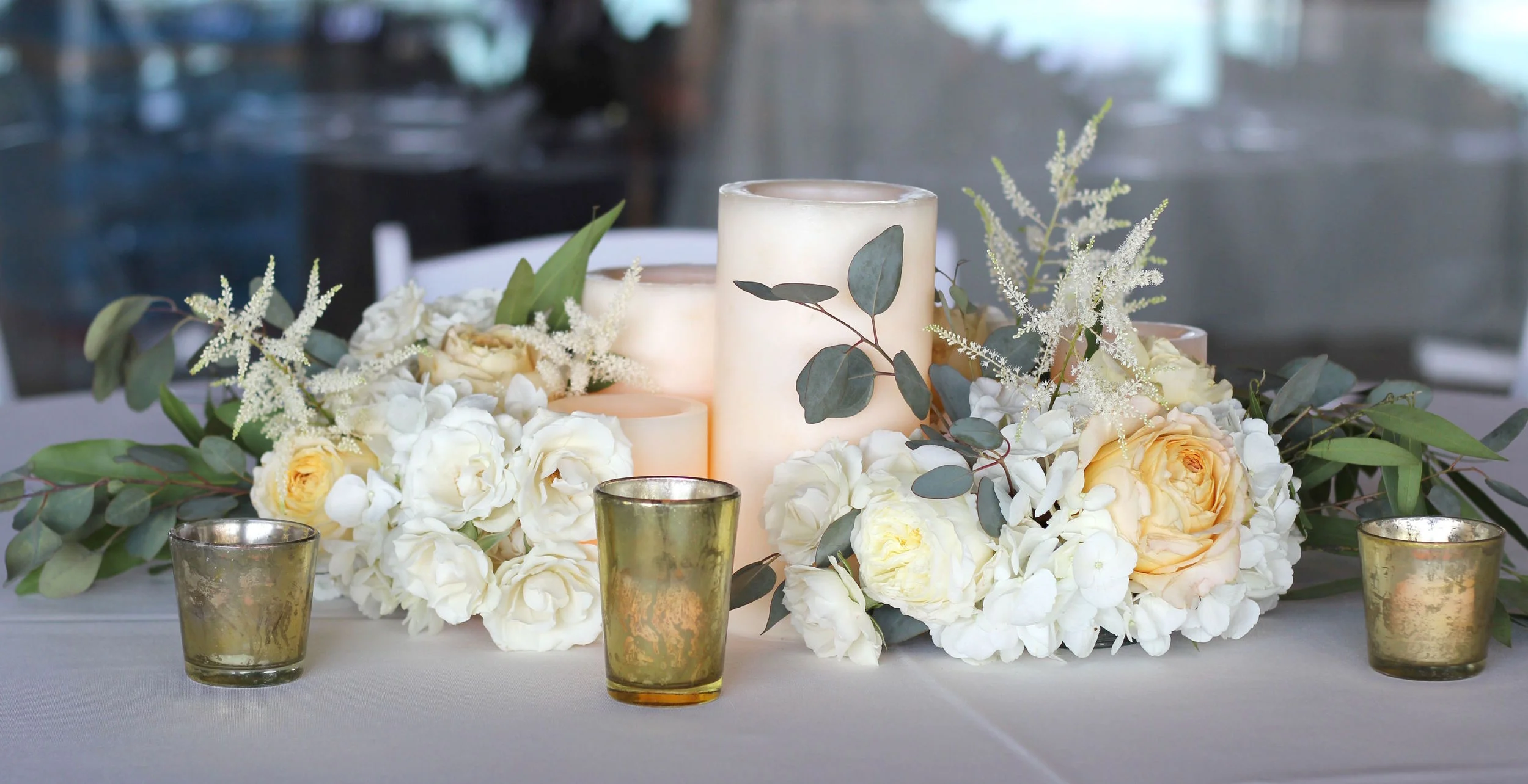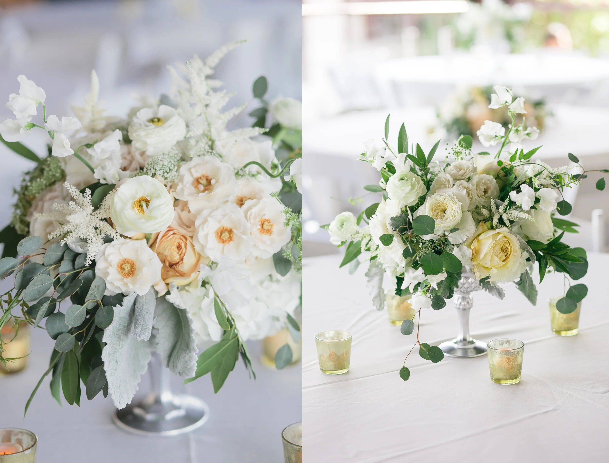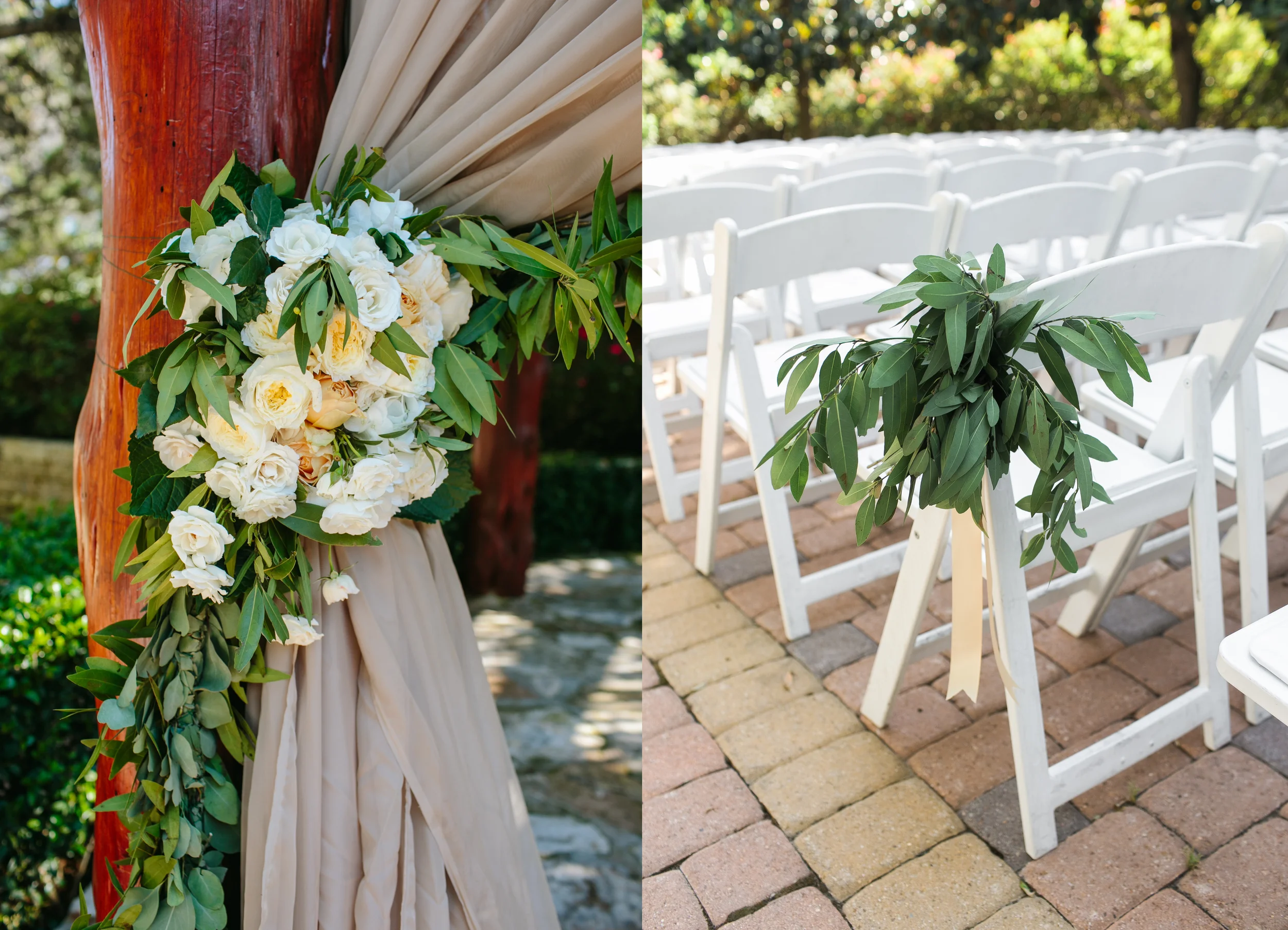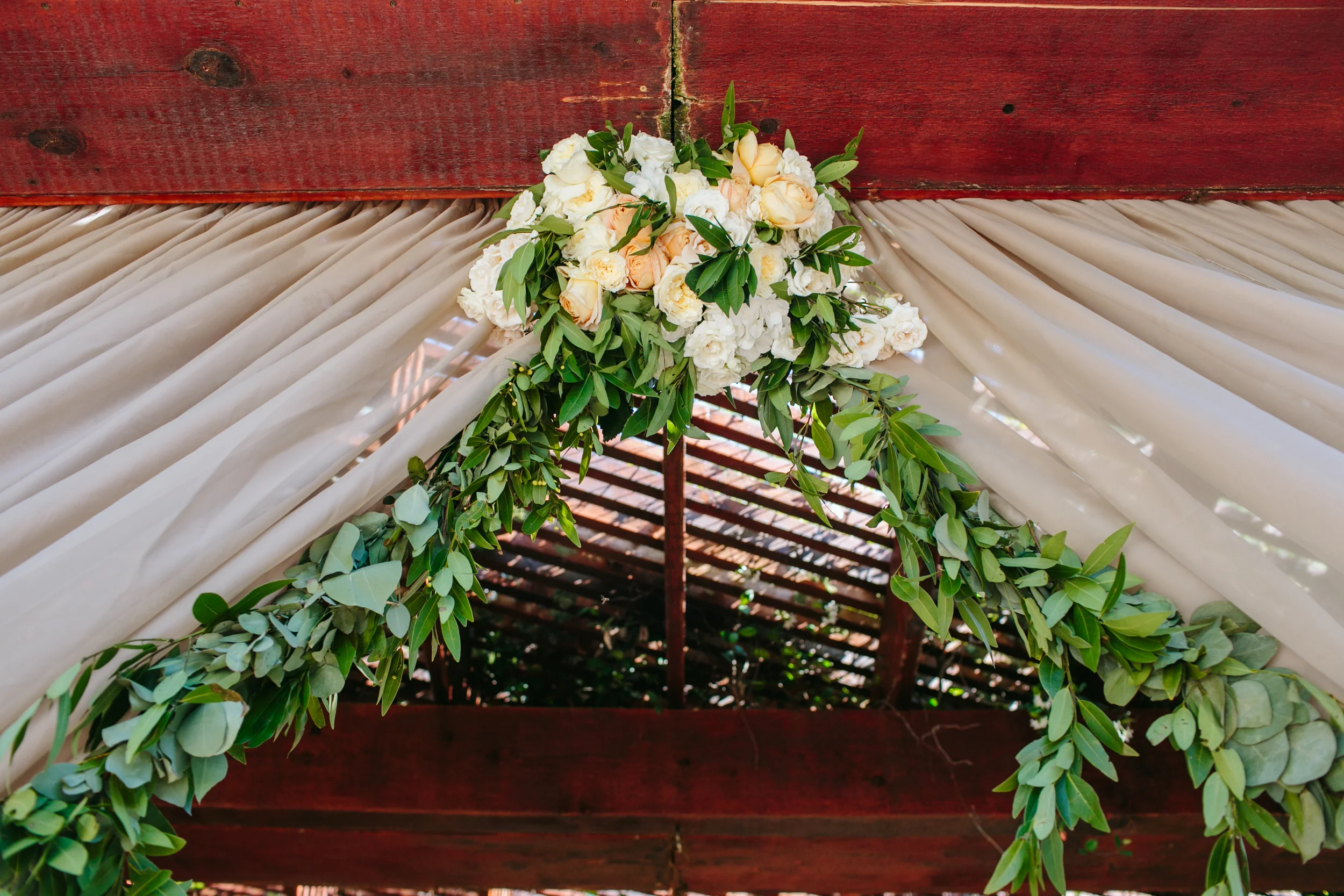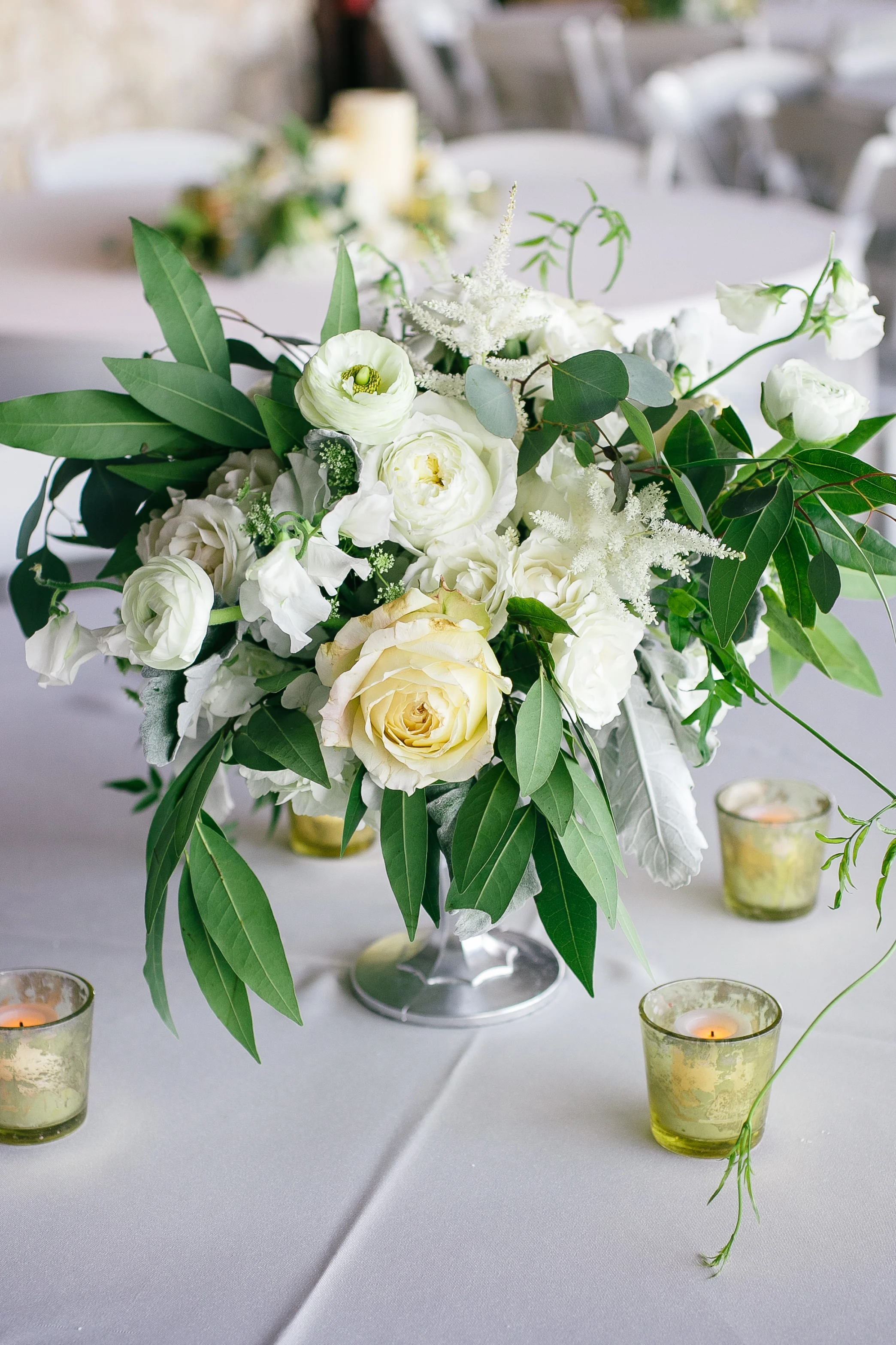 From start to finish, Natalie and Andrew's wedding at Nature's Point was nothing short of magical. Lush, creamy blooms accented by eucalyptus and bay laurel set the tone for the whole day. The ceremony site was draped in flowing taupe fabric, full garlands of greenery and romantic floral clusters. At the reception, round tables featured overflowing compotes and candle clusters accented by gorgeous blooms in cream and ivory accented by greenery. The long tables were covered in greenery runners beautifully highlighted by peonies, roses and hydrangea. Can you handle how stunning this one was?!