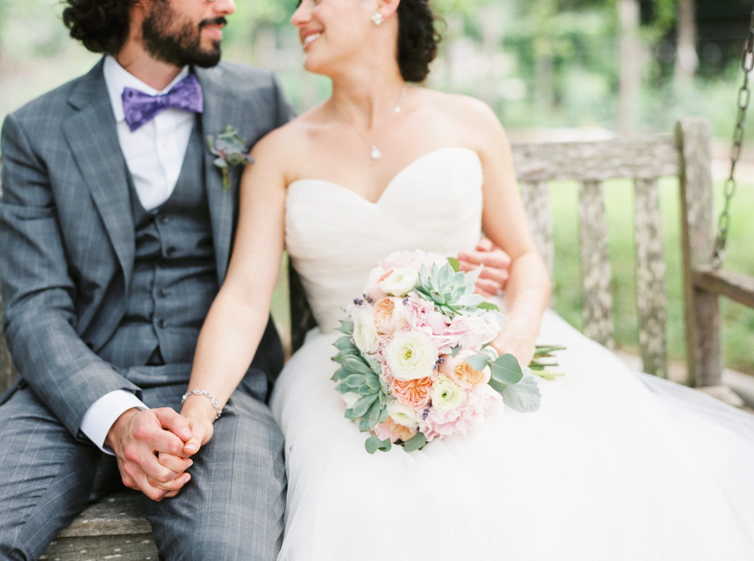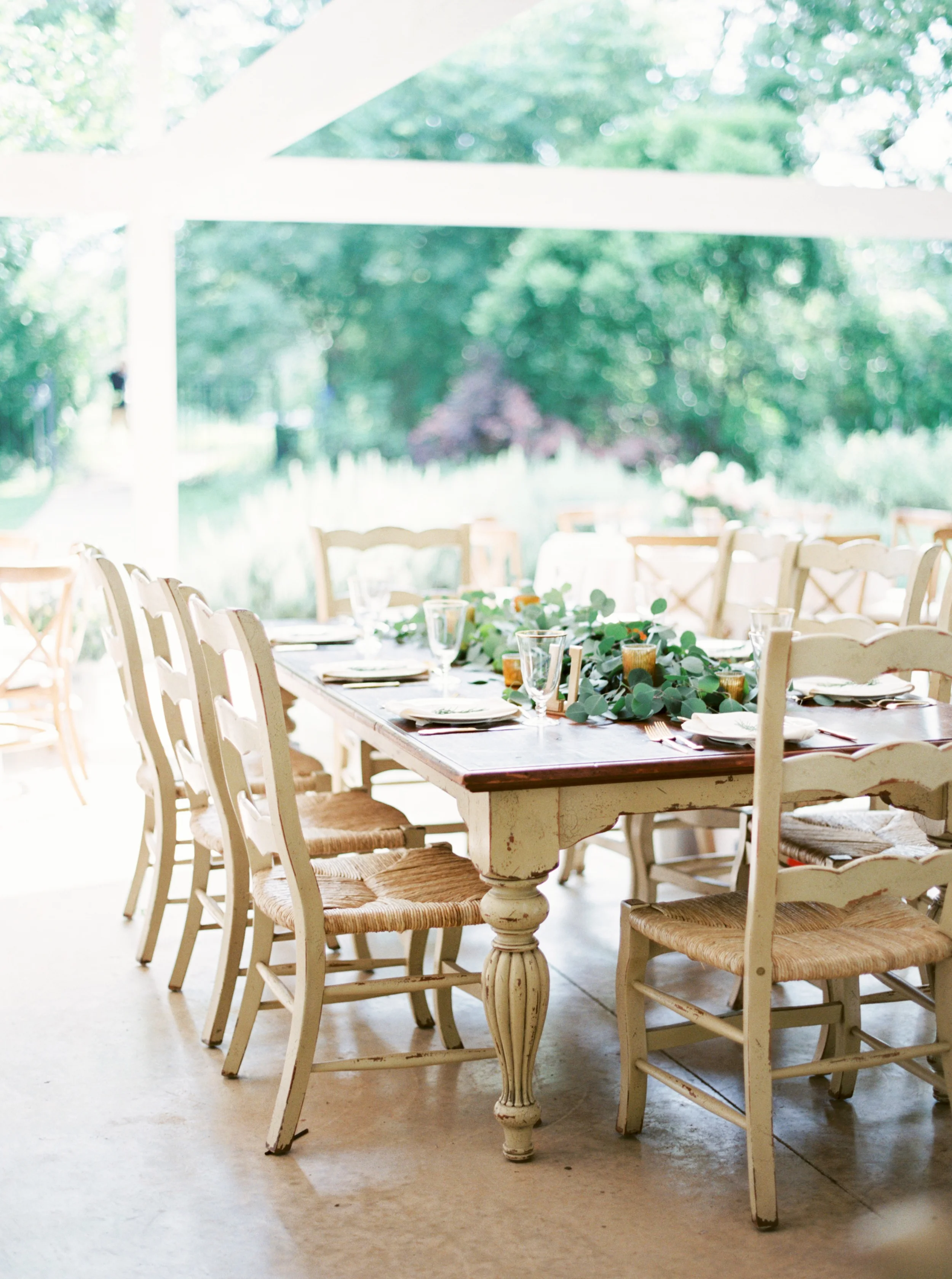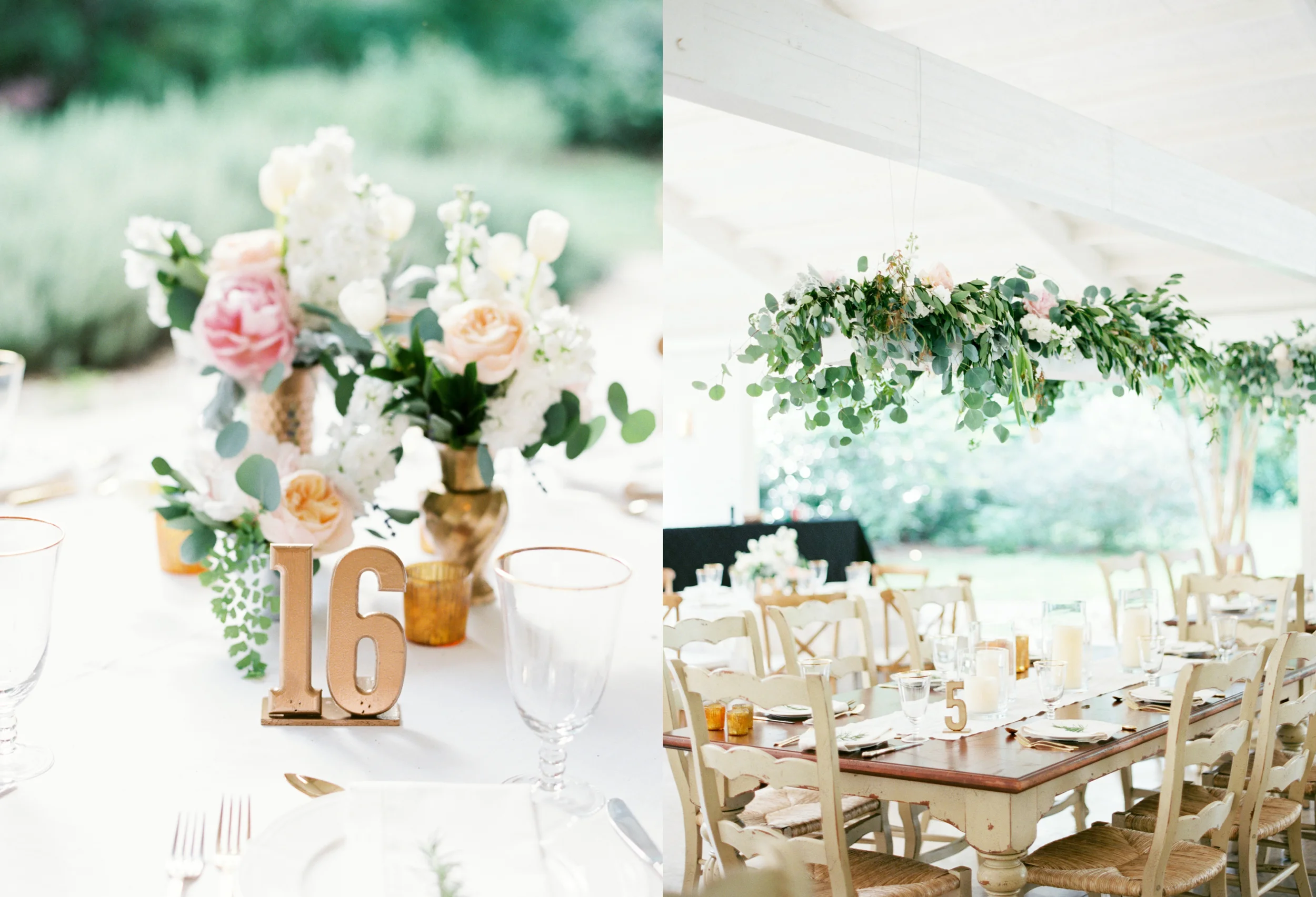 There are not enough adjectives to describe Stephanie and Eric's summertime wedding at The Winfield Inn...stunning, etherial, spectacular, breathtaking- we could go on and on. Our goal was to make everything from the ceremony site to the centerpieces feel light, airy and totally effortless. Our productions department custom built the hanging planter boxes to outline the dance floor which we filled with sprawling greenery, perfect peonies, Juliet garden roses, stock flowers and dripping tulips; and small hints of succulents throughout the table designs brought in the Texas hill country vibe, without overpowering the lush, garden-style theme. You'd better prepare your Pinterest inspiration board for this gorgeousness.
