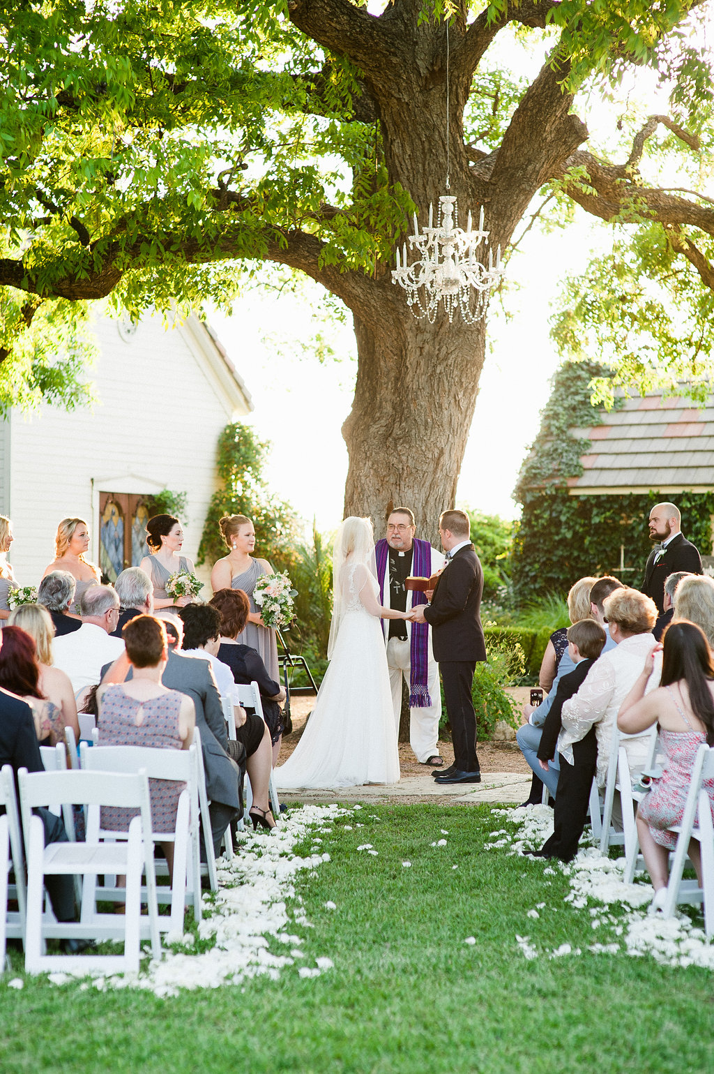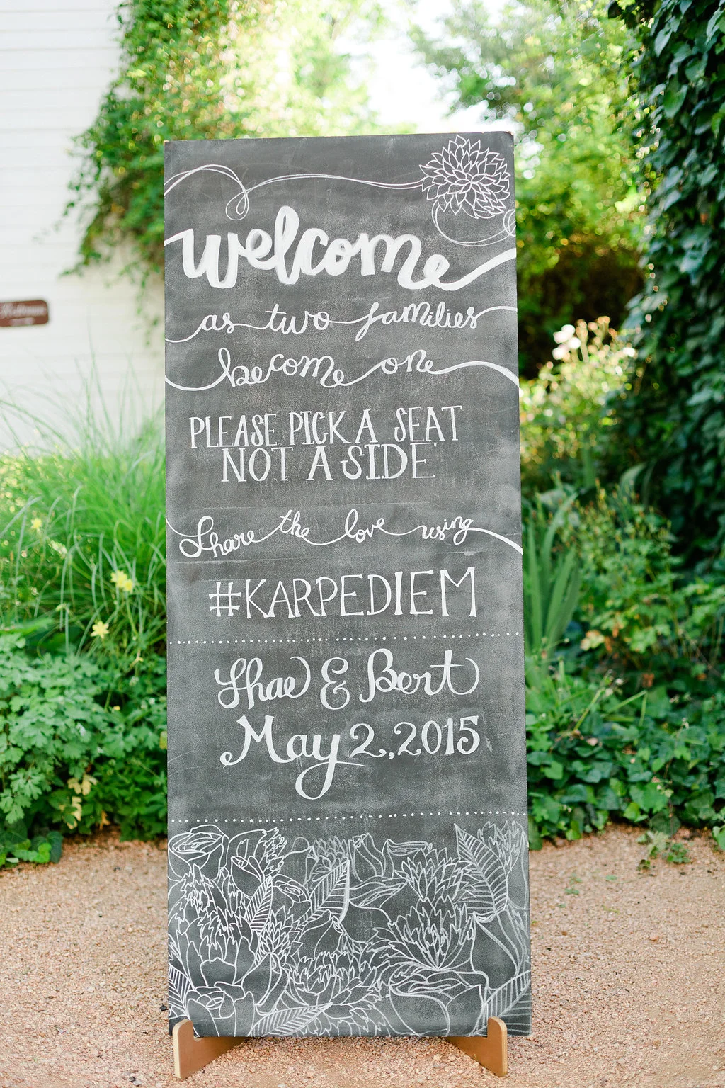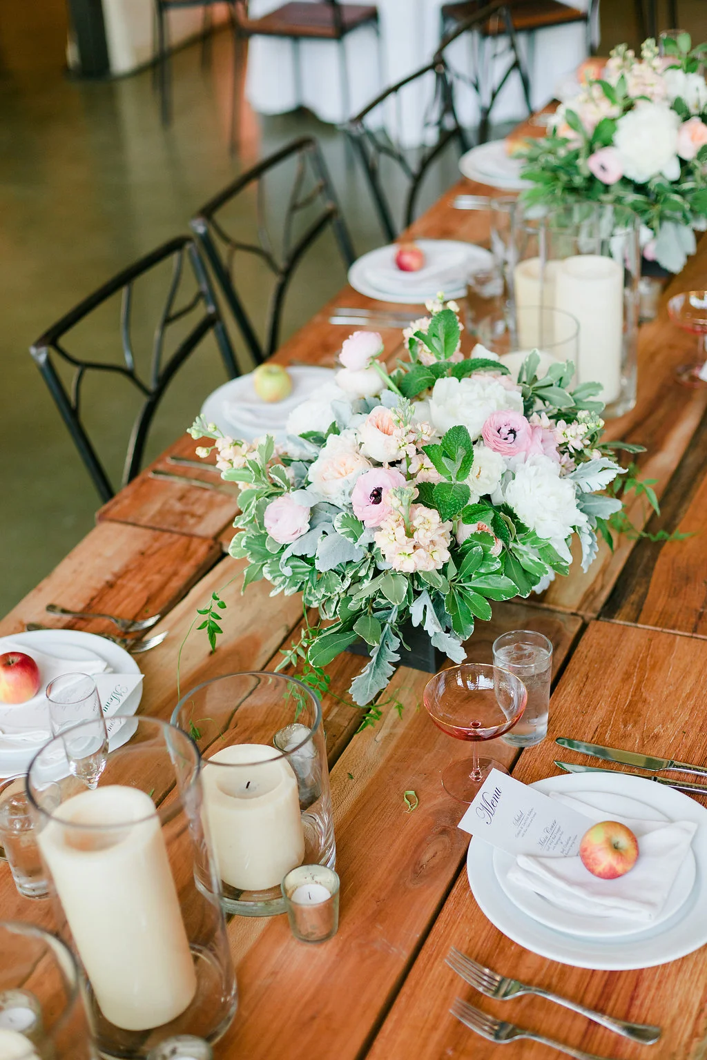 Hill country chic meets lush, secret garden for Shea and Bert's Barr Mansion wedding. With a custom ceiling installation dripping with bright green jasmine vine accented by natural wood boxes filled with peachy garden roses and crisp white peonies this wedding was the perfect combination of casual and elegance. Stunning, thoughtful details accented the romantic theme with vintage pink champagne glasses and the perfect shade of apple at each place setting. Seating assignments were displayed on an antique french door and windows outside the ballroom and custom chalkboards were used for the bar menu, candy station and welcome sign. Vintage details and soft, lush blooms made for the perfect springtime wedding.