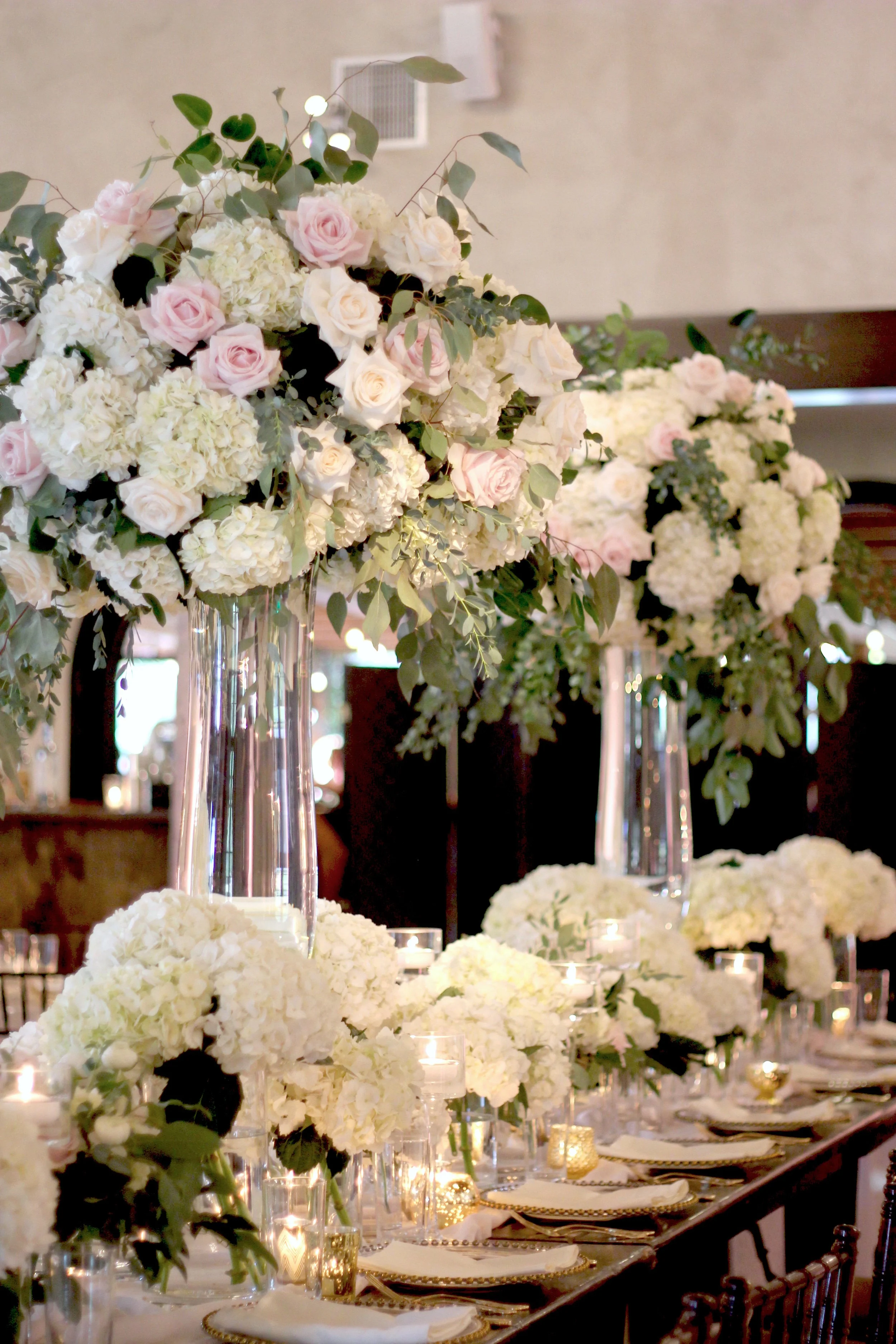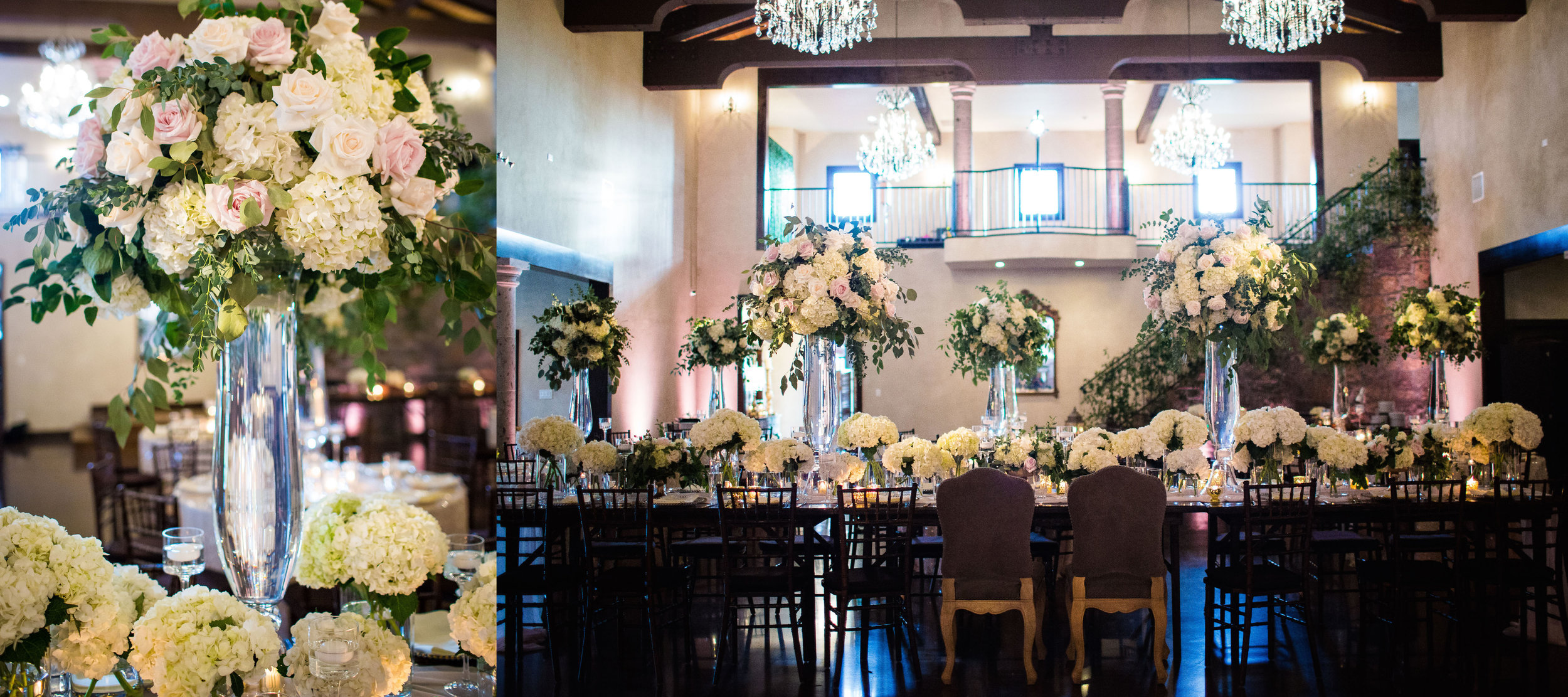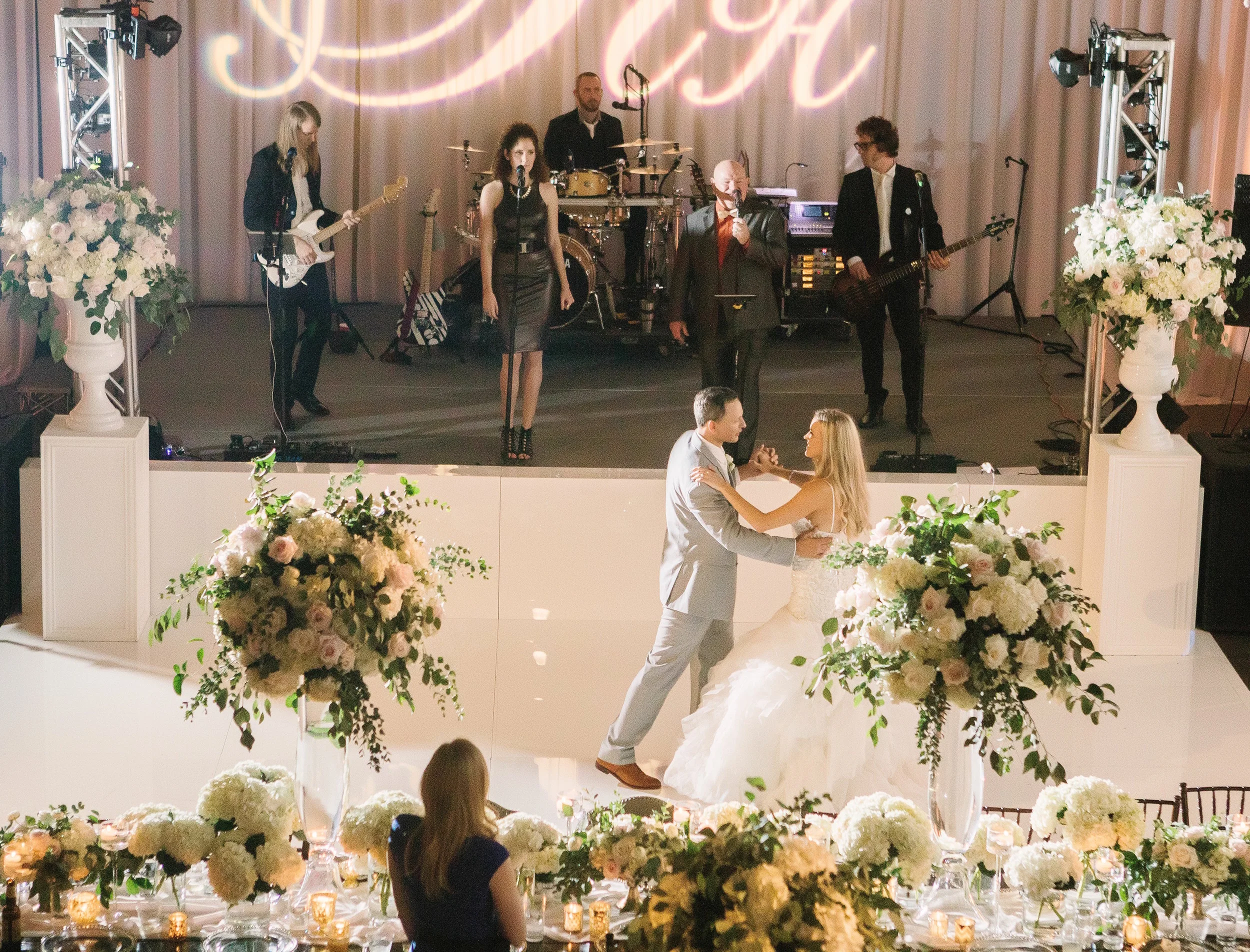 One thing is for sure, Holly was a bride with a VISION! We had the pleasure of bringing that vision to life for her dream wedding day at Ma Maison. Every single detail was perfection and the theme of the day was "wow". The ceremony was absolutely dreamy, urn vases at the back of the aisle spilling with over the top arrangements leading to the gazebo covered in wild smilax vine and lush roses. The ballroom was completely transformed with fabric draping, lighting design and- that dance floor! The floral design inside built on the ceremony decor, with tall fluted vases on the tables topped with mounds of hydrangea and greenery and all accented by glittering votive candles. The show stopping head table featuring tall arrangements and a low runner of hydrangea and candles made for a perfect focal point all night. Holly + Skip's wedding was so filled with stunning details it was hard to choose our favorites! It also doesn't hurt when the bride and groom are THIS gorgeous!