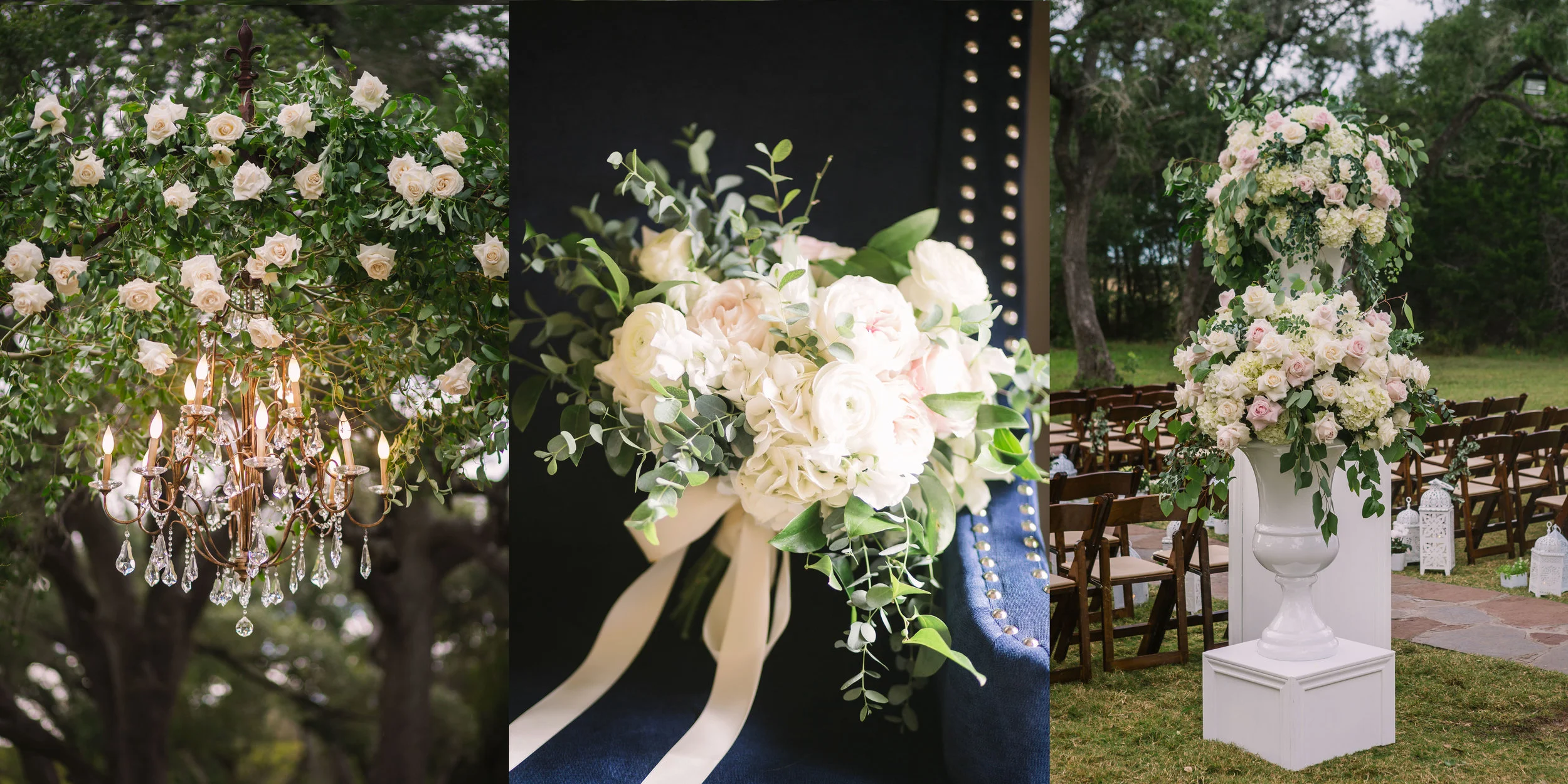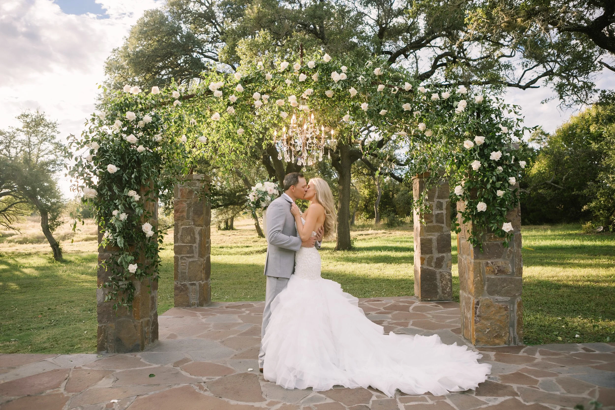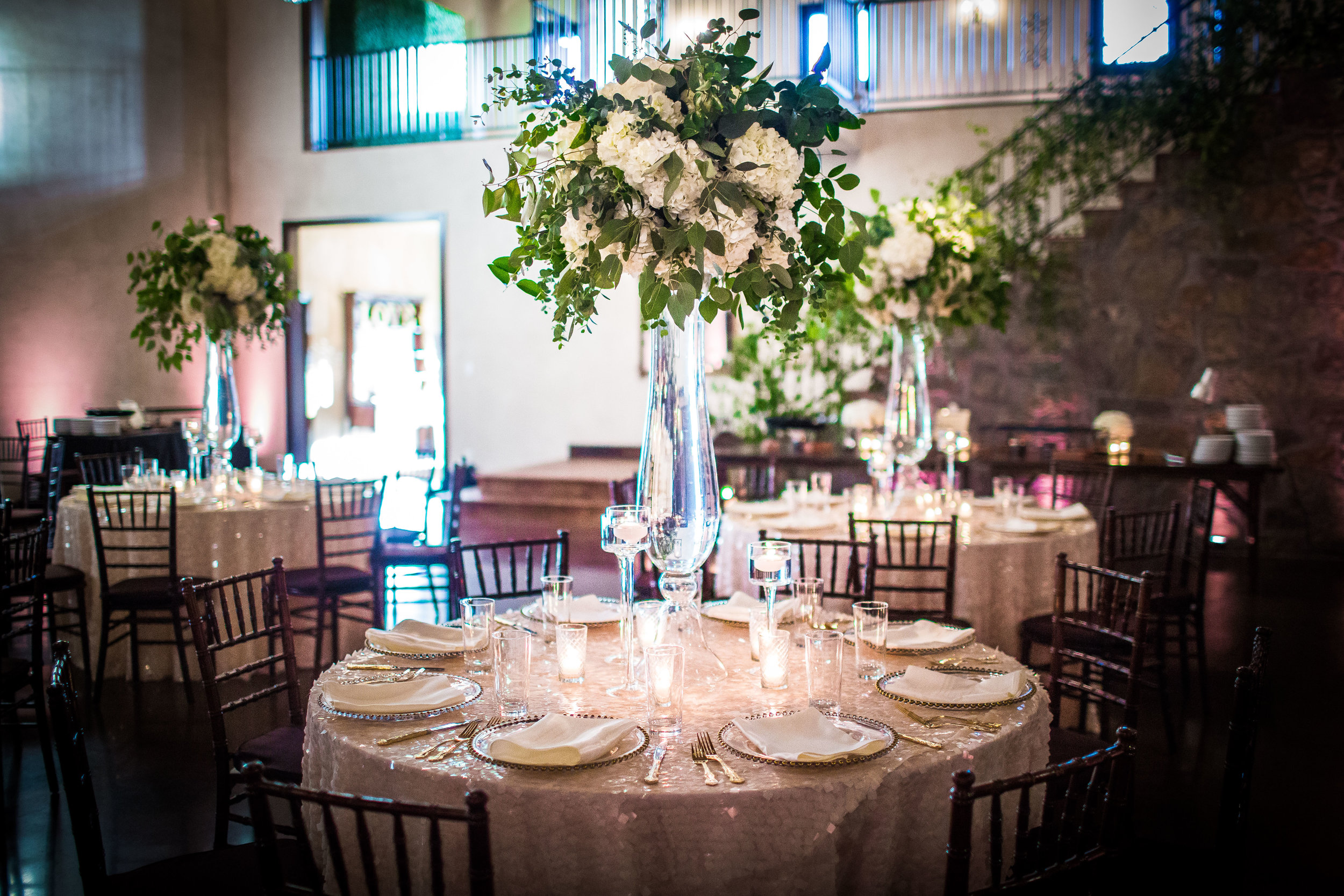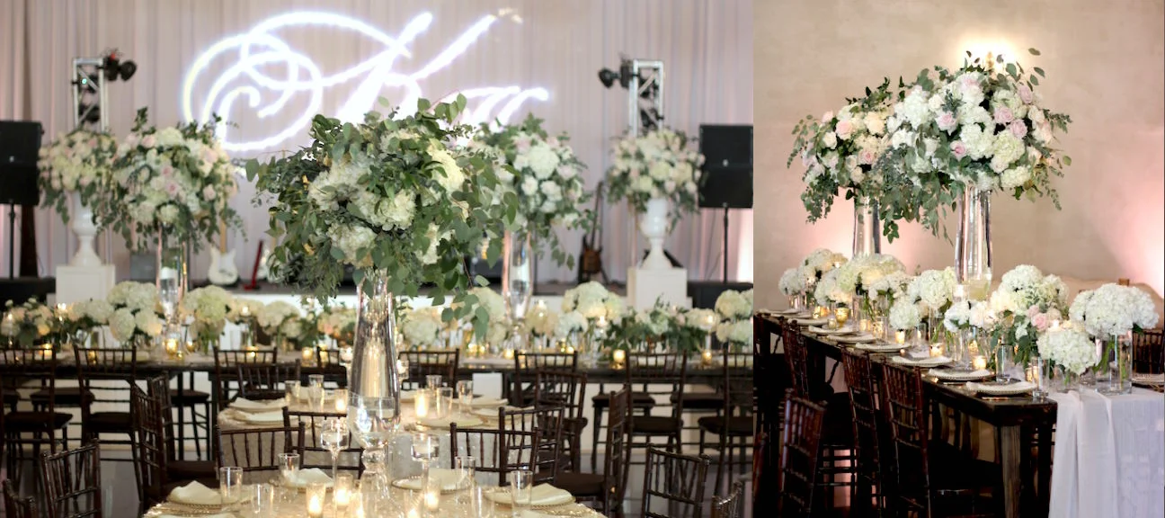 One thing is for sure, Holly was a bride with a VISION! We had the pleasure of bringing that vision to life for her dream wedding day at Ma Maison. Every single detail was perfection and the theme of the day was "wow". The ceremony was absolutely dreamy, urn vases at the back of the aisle spilling with over the top arrangements leading to the gazebo covered in wild smilax vine and lush roses. The ballroom was completely transformed with fabric draping, lighting design and- that dance floor! The floral design inside built on the ceremony decor, with tall fluted vases on the tables topped with mounds of hydrangea and greenery and all accented by glittering votive candles. The show stopping head table featuring tall arrangements and a low runner of hydrangea and candles made for a perfect focal point all night. Holly + Skip's wedding was so filled with stunning details it was hard to choose our favorites! It also doesn't hurt when the bride and groom are THIS gorgeous!