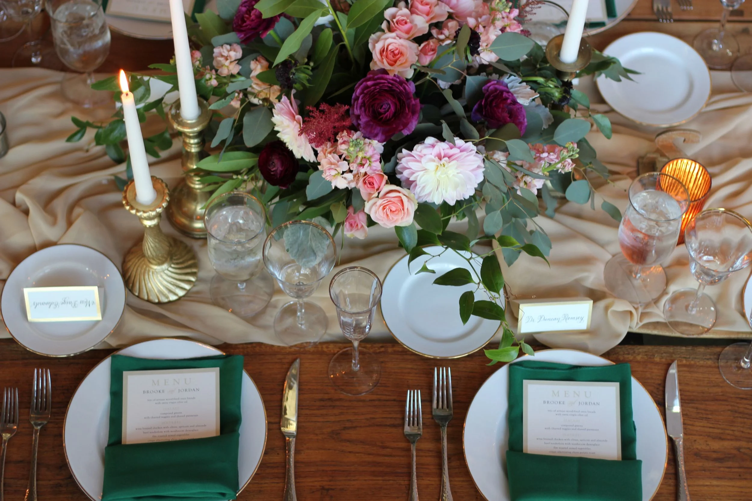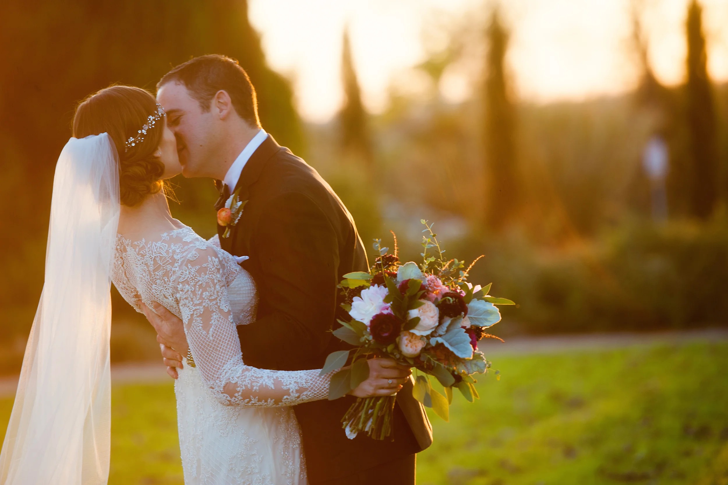 If you could call someone and order the "perfect December day", then this day is what you would get. The sun was shining, the gardens were blooming, the breeze was the perfect temperature, and of course we brought a lot of flowers with us to spice things up a bit. And draping!! We brought a lot of that too. Now, Brooke and Jordan - their story told in flowers...