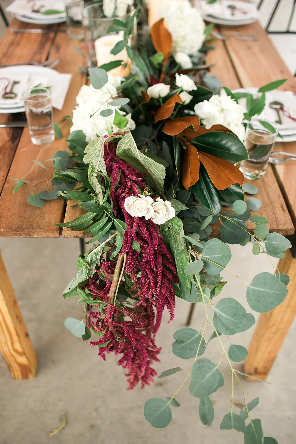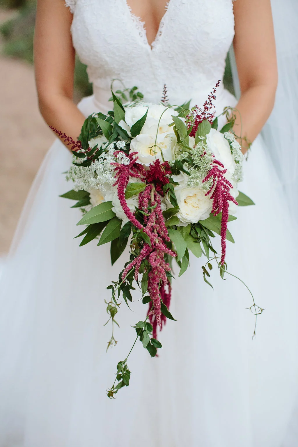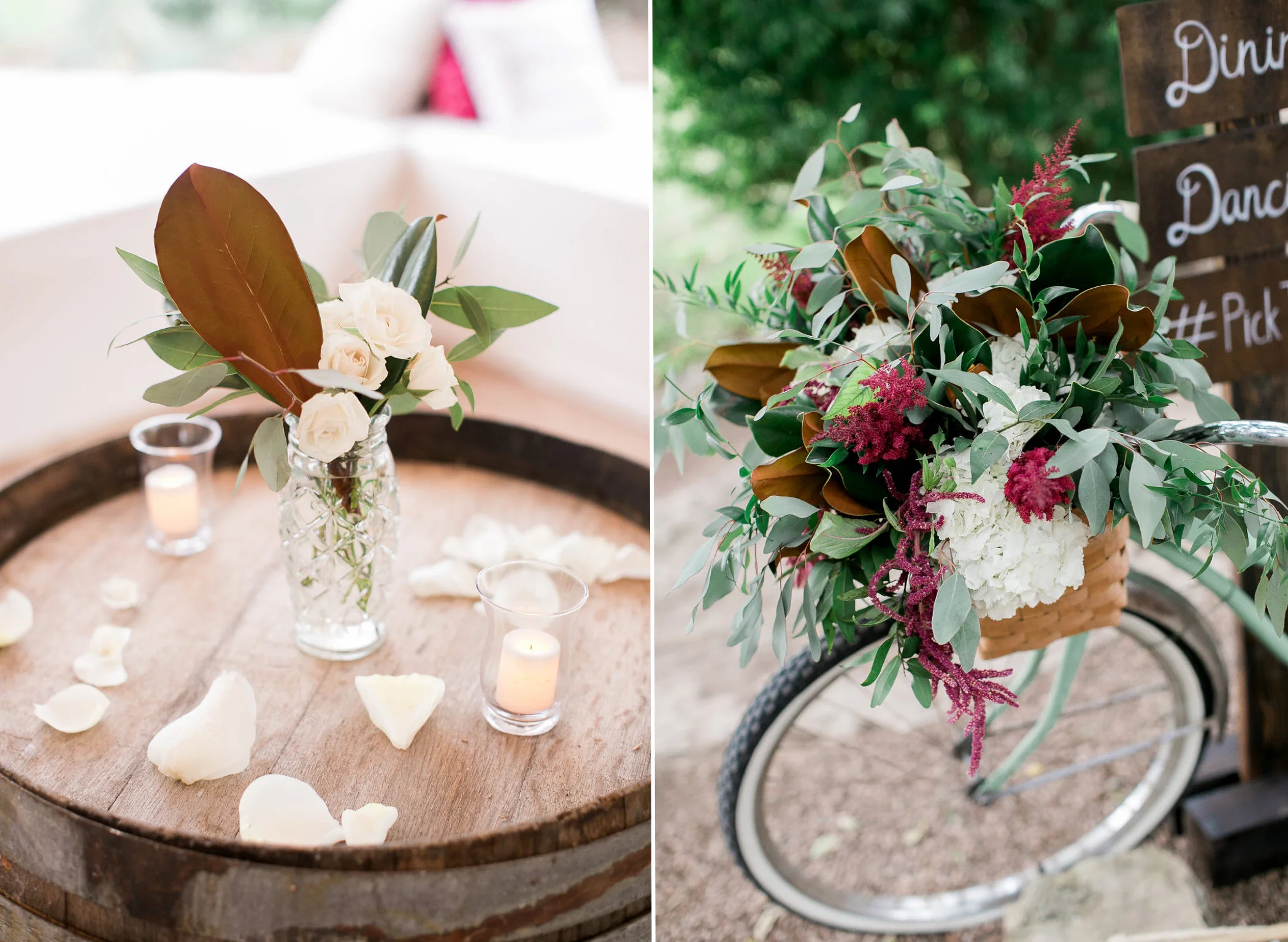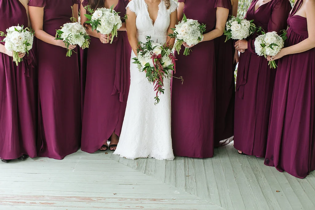 If you're obsessed with the marsala trend, prepare to be inspired by Kelsey + Jimmy's whimsical Barr Mansion wedding! For this one we ditched the typical wine-hued flowers for a fresh take on this color scheme. Using much more textured, out of the ordinary blooms- like dripping amaranths and fluffy astilbe- we created a vibe of effortless romance throughout the design. Ivory Patience garden roses were sprinkled all over the ceremony and design details- from the aisle markers to the precious vintage bicycle which accented the directional sign- the fragrant blooms were the perfect touch.