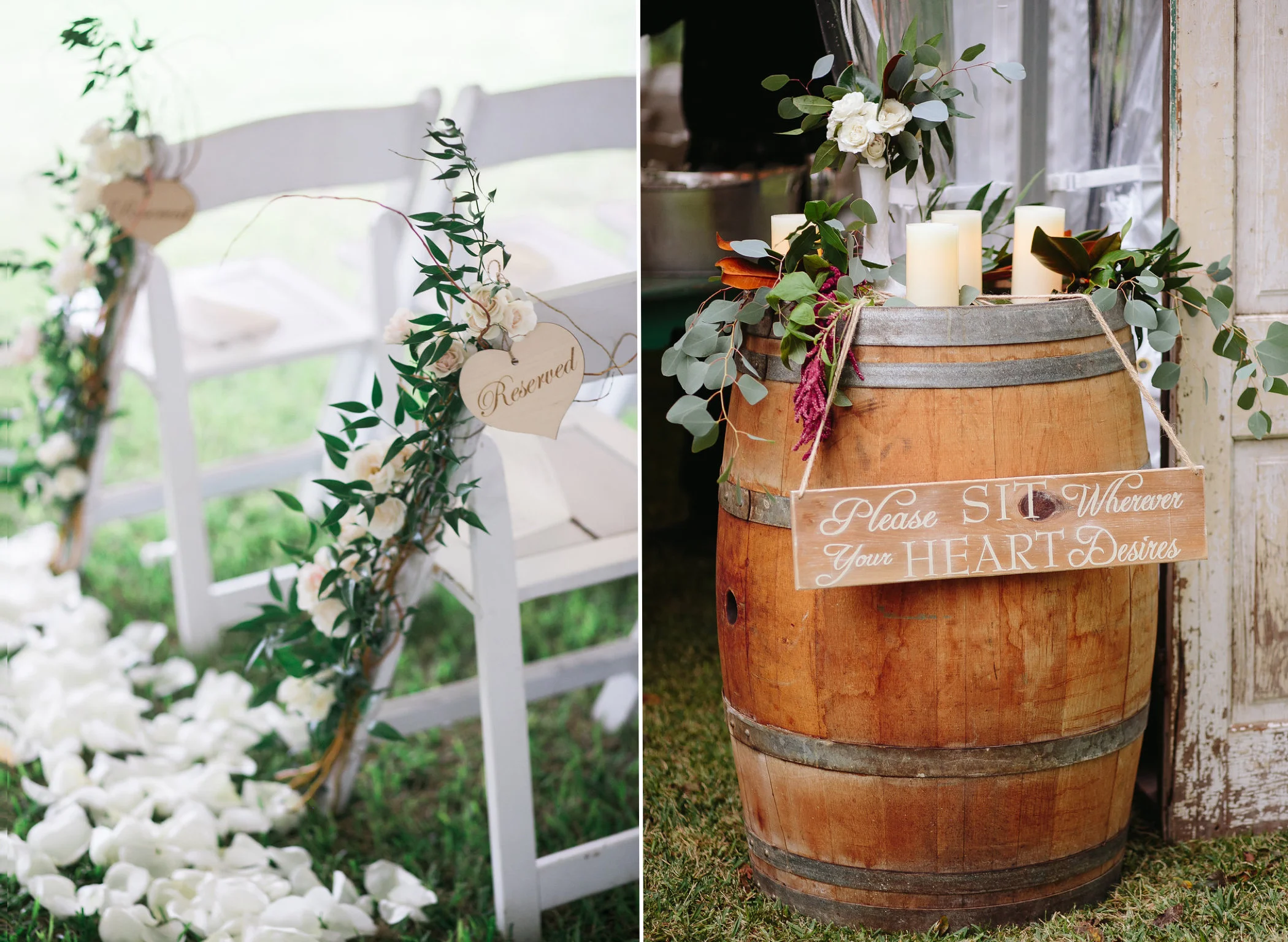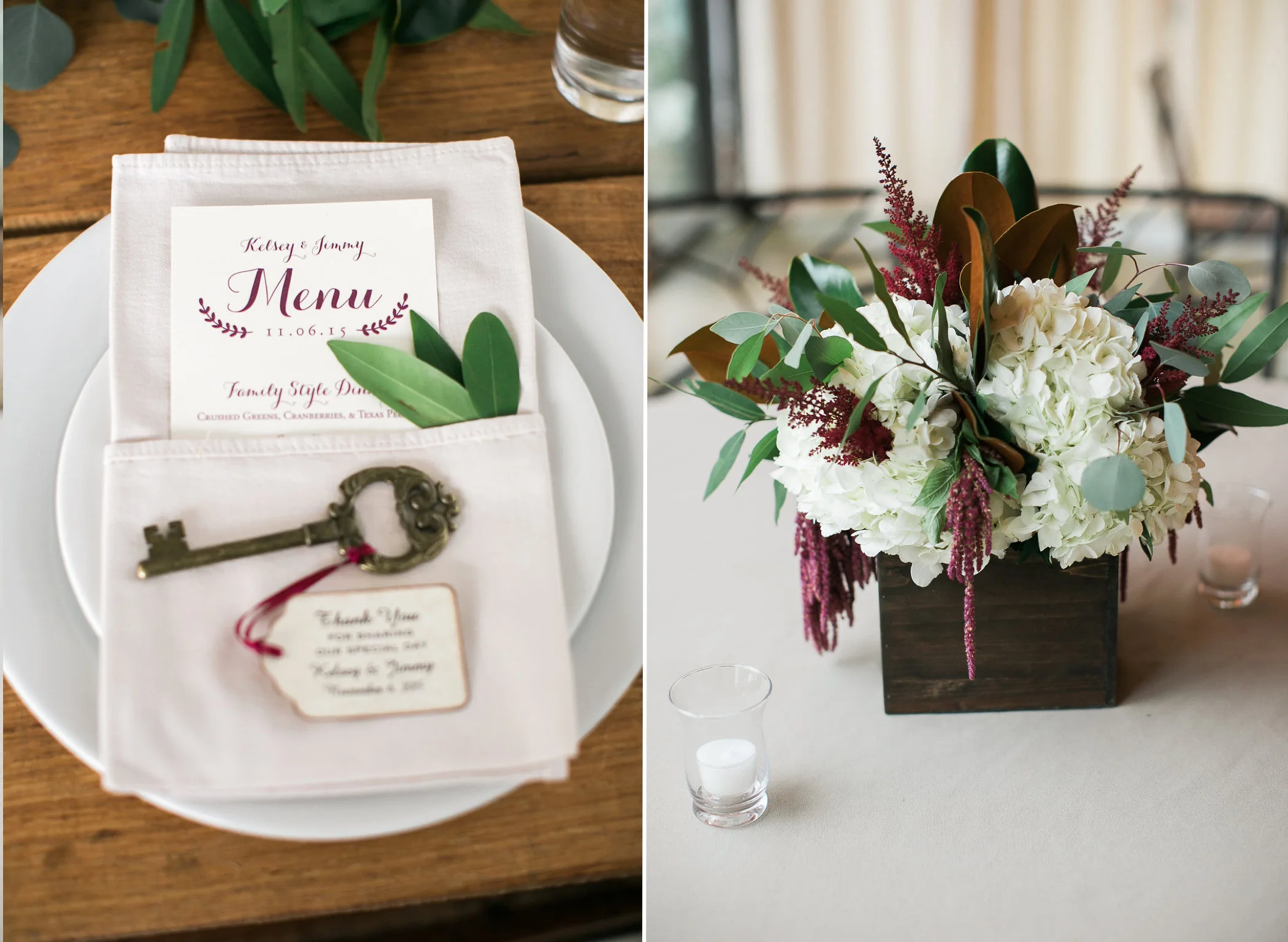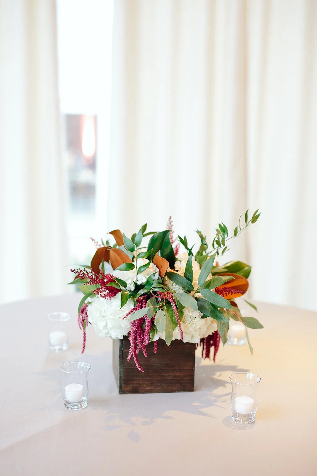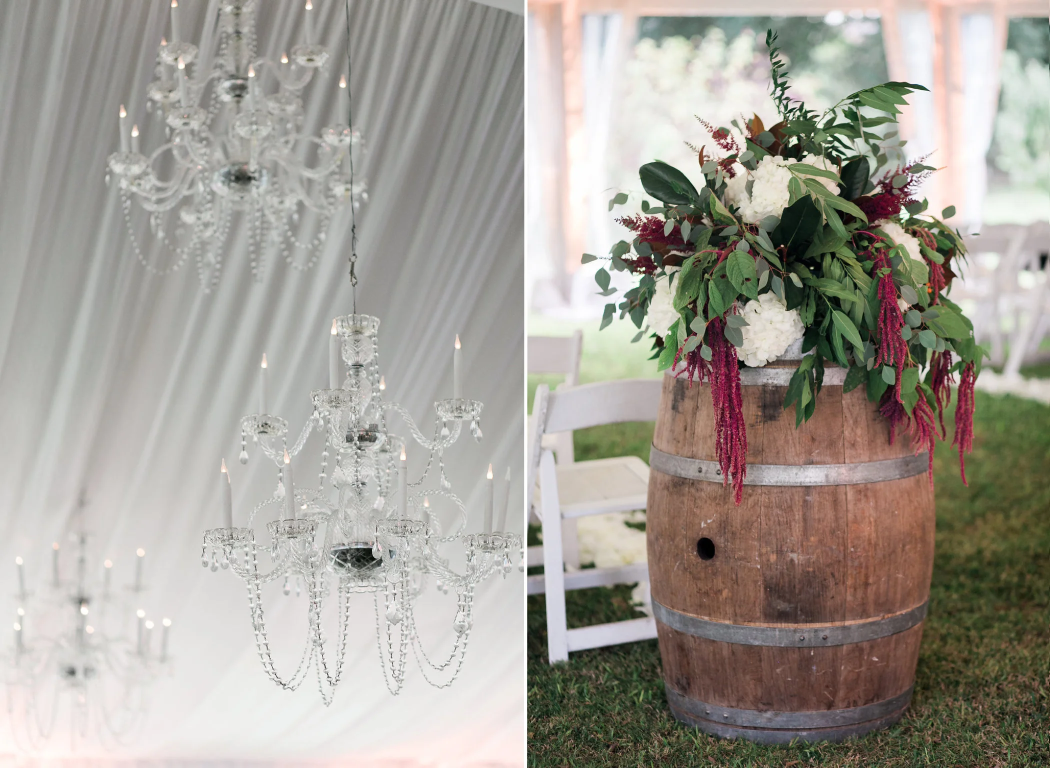 If you're obsessed with the marsala trend, prepare to be inspired by Kelsey + Jimmy's whimsical Barr Mansion wedding! For this one we ditched the typical wine-hued flowers for a fresh take on this color scheme. Using much more textured, out of the ordinary blooms- like dripping amaranths and fluffy astilbe- we created a vibe of effortless romance throughout the design. Ivory Patience garden roses were sprinkled all over the ceremony and design details- from the aisle markers to the precious vintage bicycle which accented the directional sign- the fragrant blooms were the perfect touch.