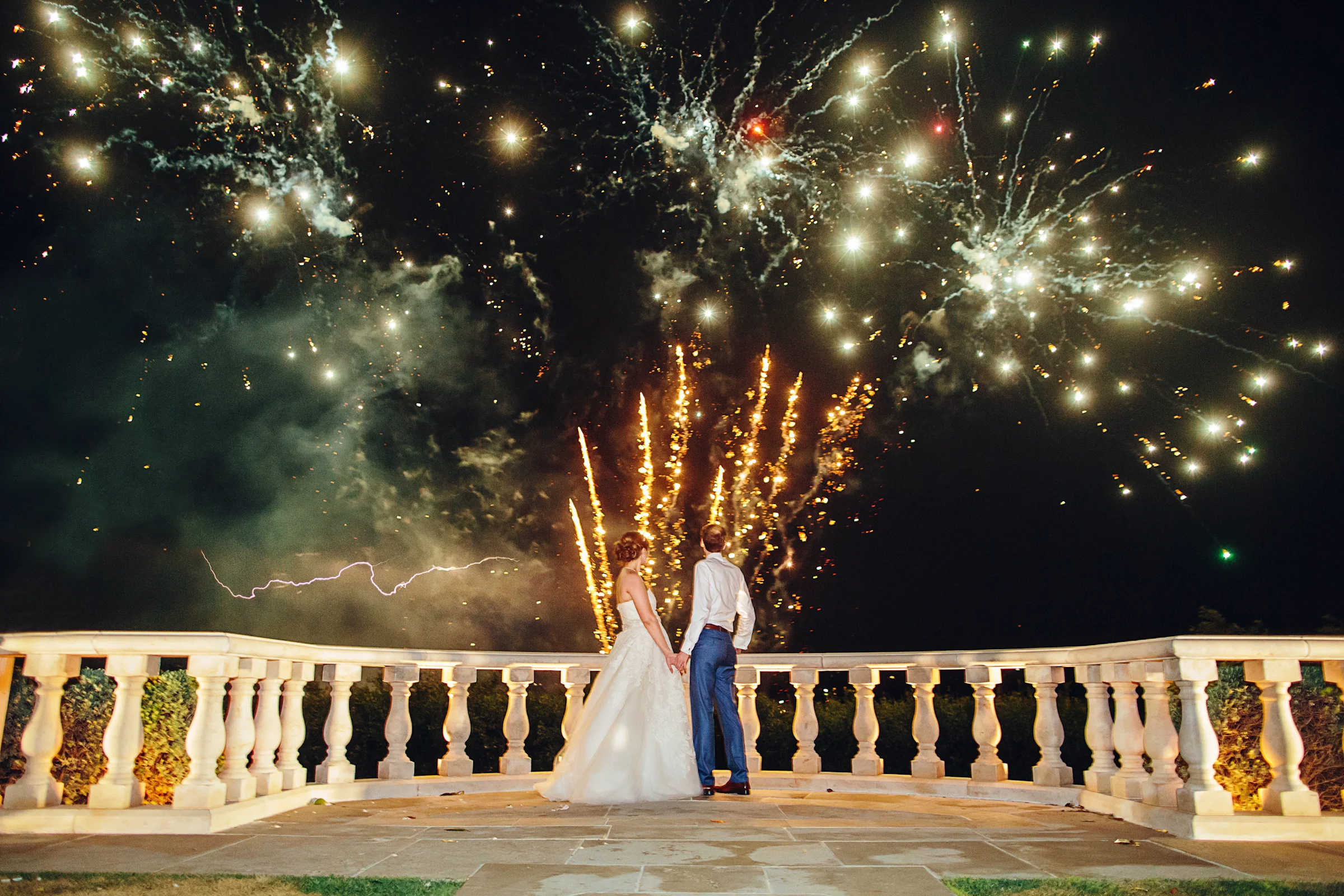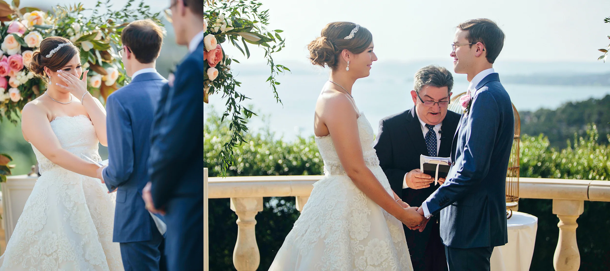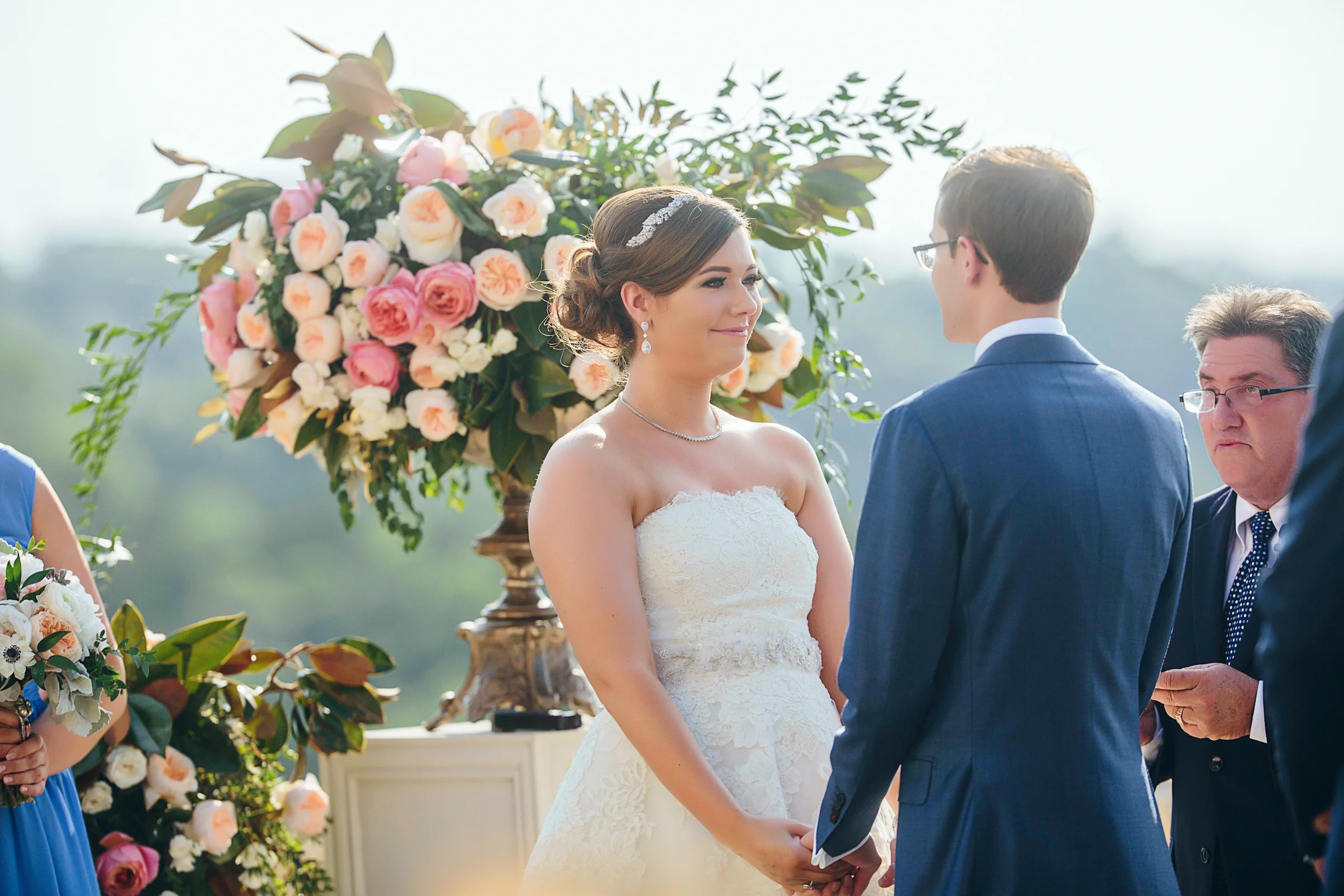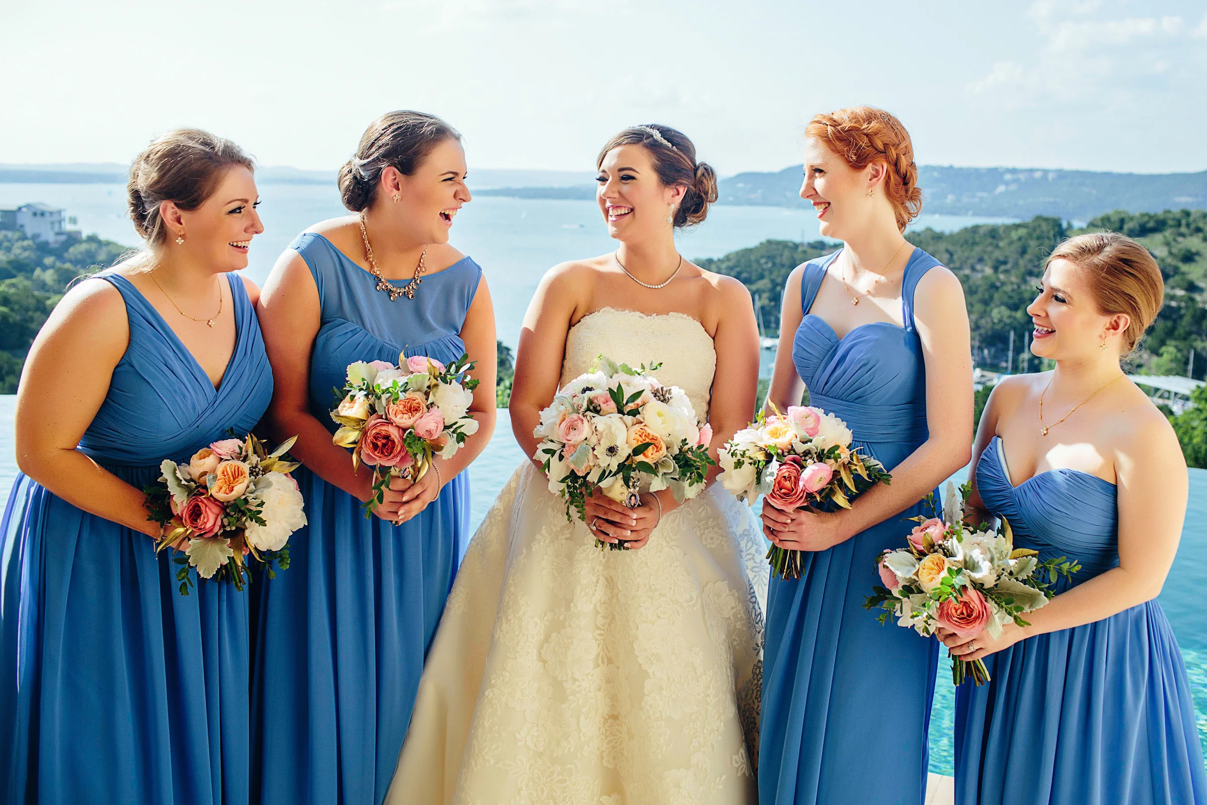 A stunning, cliffside ceremony followed by a serene sunset and wow-factor fire works to close the night. Meredith + Michael's wedding was elegant, over-the-top and crazy romantic. Fluffy peonies and garden roses in peach and coral hues added extravagant detail throughout the design, meeting greenery and taper candles for a vibe that read striking garden party in the heart of Texas lake country.