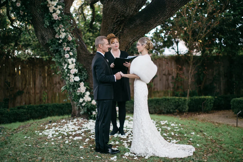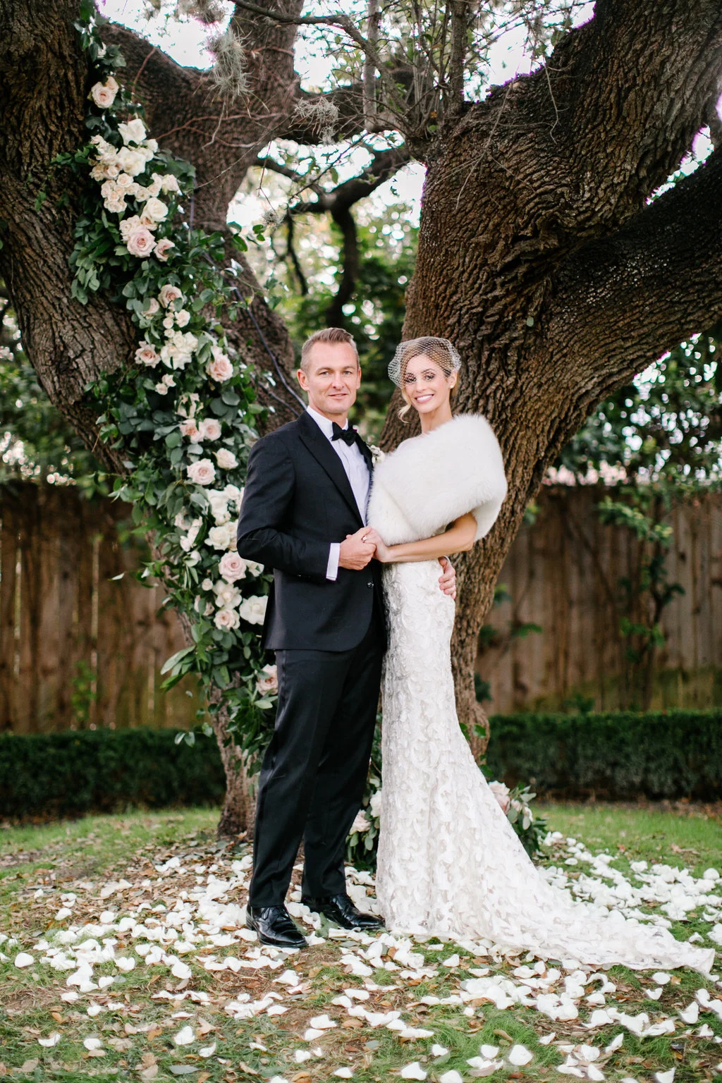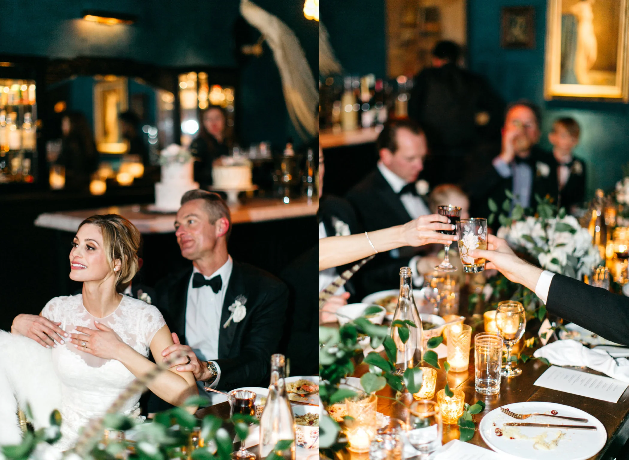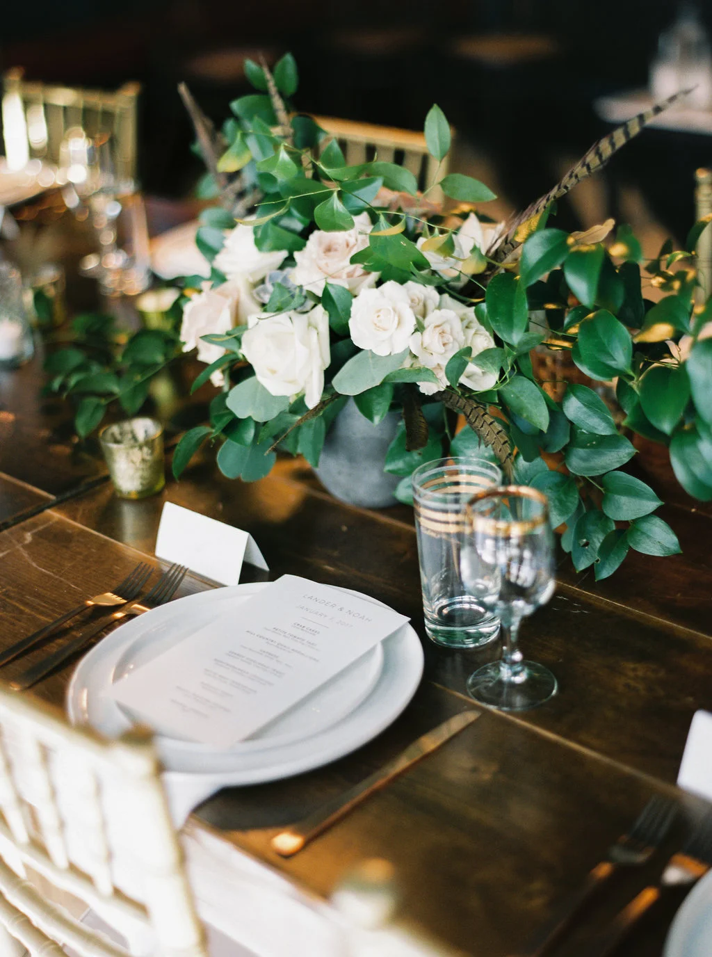 When the couple is THIS stylish and the guest count has only 20 names, it means that we get to have some serious fun with the decor. Lander + Noah are local entrepreneurs who wanted to begin their official married life surrounded only by those closest to them. The whole day was intimate, cozy and full of gorgeous details. The lush garland at the ceremony site covered in perfectly bloomed roses made for the most romantic backdrop for Lander + Noah to say their "I do"s. Dinner was set in the eclectic Saint Cecilia bar, aglow with candles and decorated with flowing arrangements filled with soft blooms, sprawling greenery and hints of pheasant feathers. Overall, this wedding was simple, elegant and crazy romantic!